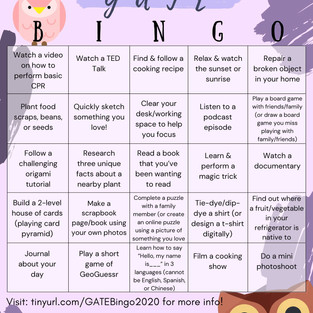 ❄️ All bingo participants are required to submit proof of task completion to receive points. Instructions on how to submit proof can be found here: https://tinyurl.com/GATEBingo2020